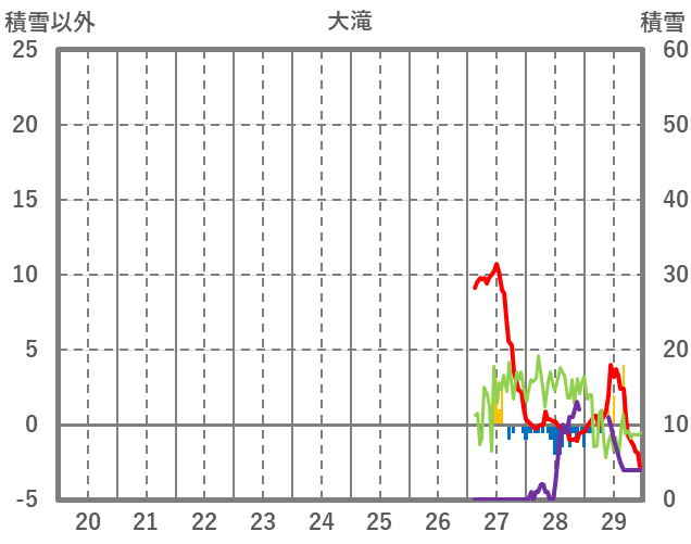 | 日 | 時 | 気温 | 降水 | 風向/風速 | 日照 | 積雪 | 降雪 |