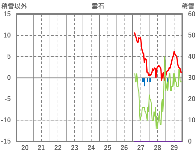 | 日 | 時 | 気温 | 降水 | 風向/風速 | 日照 | 積雪 | 降雪 |