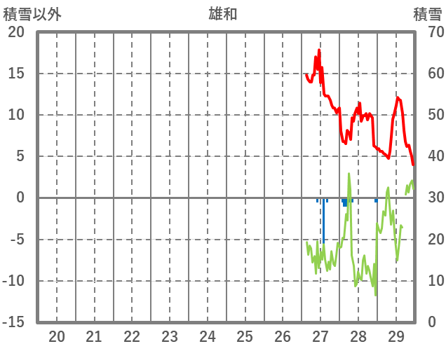 | 日 | 時 | 気温 | 降水 | 風向/風速 | 日照 | 積雪 | 降雪 |
