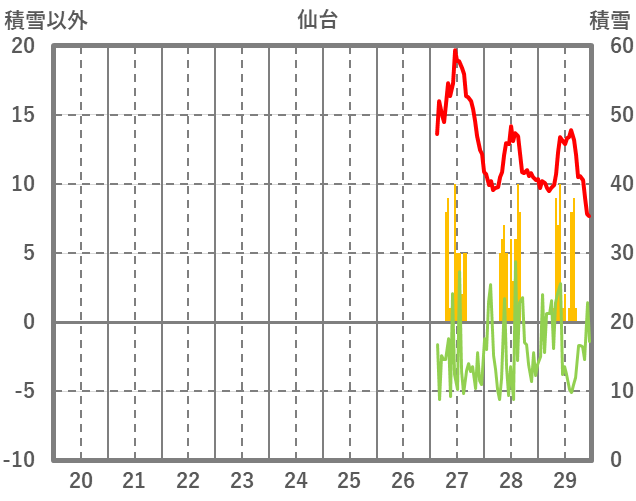 | 日 | 時 | 気温 | 降水 | 風向/風速 | 日照 | 積雪 | 降雪 |