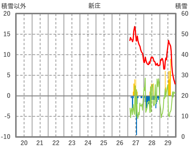 | 日 | 時 | 気温 | 降水 | 風向/風速 | 日照 | 積雪 | 降雪 |