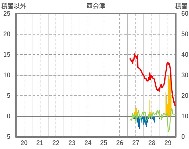 | 日 | 時 | 気温 | 降水 | 風向/風速 | 日照 | 積雪 | 降雪 |