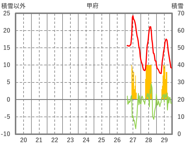 | 日 | 時 | 気温 | 降水 | 風向/風速 | 日照 | 積雪 | 降雪 |