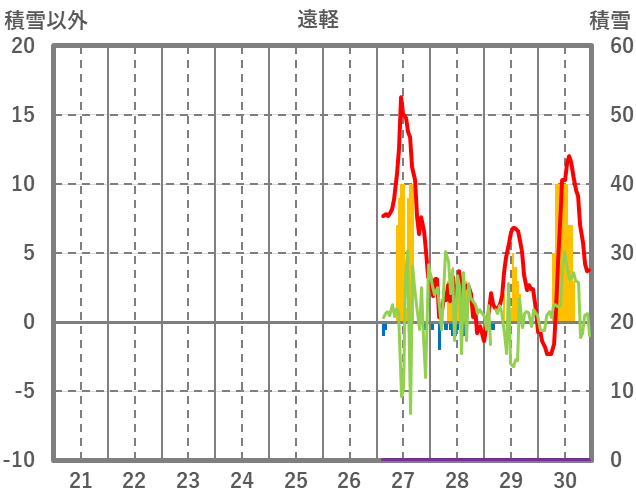 | 日 | 時 | 気温 | 降水 | 風向/風速 | 日照 | 積雪 | 降雪 |