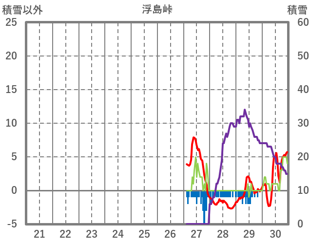 | 日 | 時 | 気温 | 降水 | 風向/風速 | 日照 | 積雪 | 降雪 |