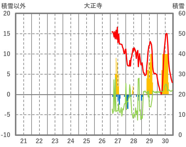 | 日 | 時 | 気温 | 降水 | 風向/風速 | 日照 | 積雪 | 降雪 |