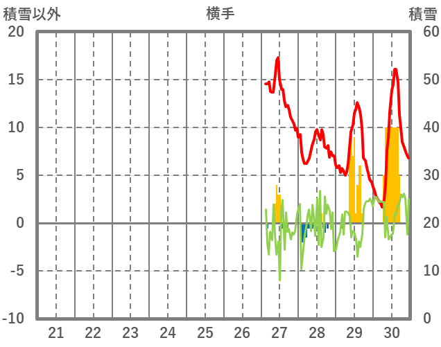 | 日 | 時 | 気温 | 降水 | 風向/風速 | 日照 | 積雪 | 降雪 |