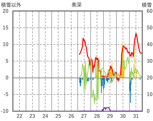 | 日 | 時 | 気温 | 降水 | 風向/風速 | 日照 | 積雪 | 降雪 |