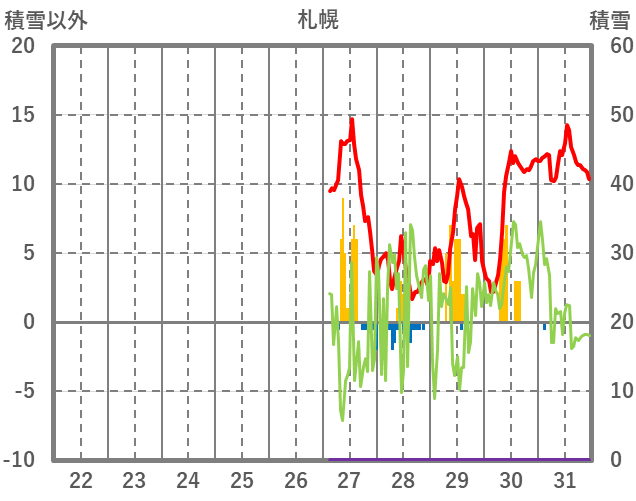 | 日 | 時 | 気温 | 降水 | 風向/風速 | 日照 | 積雪 | 降雪 |
