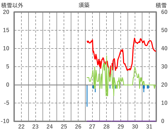 | 日 | 時 | 気温 | 降水 | 風向/風速 | 日照 | 積雪 | 降雪 |
