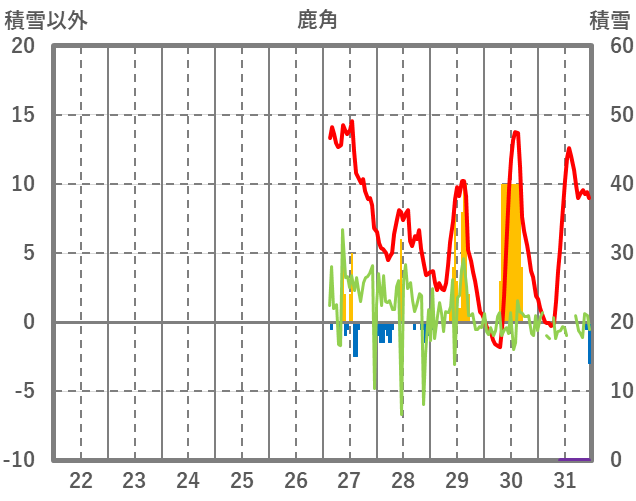 | 日 | 時 | 気温 | 降水 | 風向/風速 | 日照 | 積雪 | 降雪 |