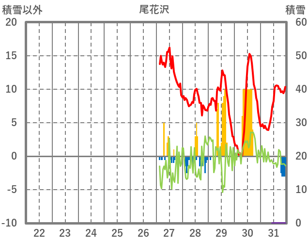 | 日 | 時 | 気温 | 降水 | 風向/風速 | 日照 | 積雪 | 降雪 |
