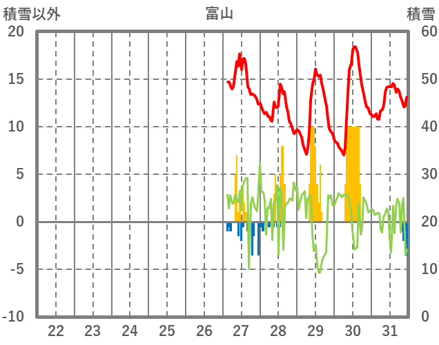 | 日 | 時 | 気温 | 降水 | 風向/風速 | 日照 | 積雪 | 降雪 |