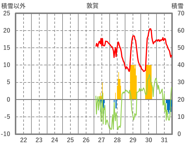 | 日 | 時 | 気温 | 降水 | 風向/風速 | 日照 | 積雪 | 降雪 |