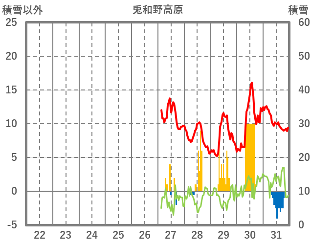 | 日 | 時 | 気温 | 降水 | 風向/風速 | 日照 | 積雪 | 降雪 |