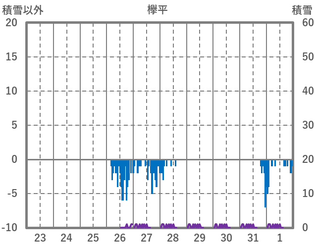 | 日 | 時 | 気温 | 降水 | 風向/風速 | 日照 | 積雪 | 降雪 |