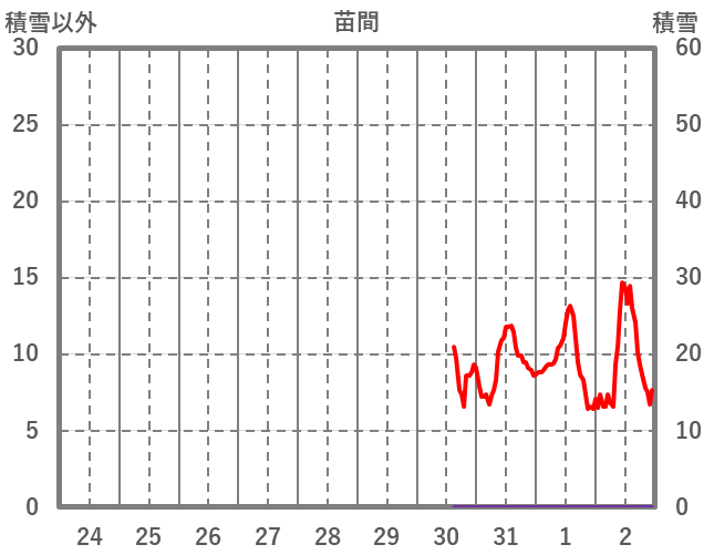 | 日 | 時 | 気温 | 降水 | 風向/風速 | 日照 | 積雪 | 降雪 |
