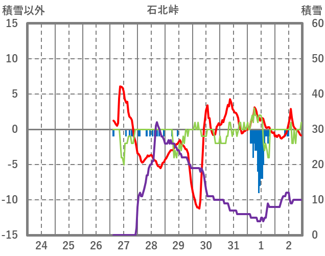 | 日 | 時 | 気温 | 降水 | 風向/風速 | 日照 | 積雪 | 降雪 |