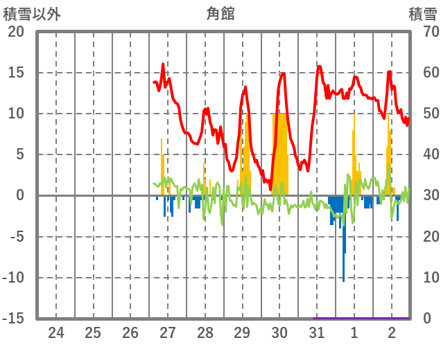 | 日 | 時 | 気温 | 降水 | 風向/風速 | 日照 | 積雪 | 降雪 |