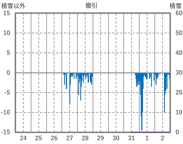 | 日 | 時 | 気温 | 降水 | 風向/風速 | 日照 | 積雪 | 降雪 |