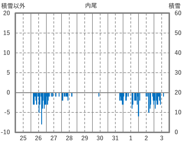 | 日 | 時 | 気温 | 降水 | 風向/風速 | 日照 | 積雪 | 降雪 |