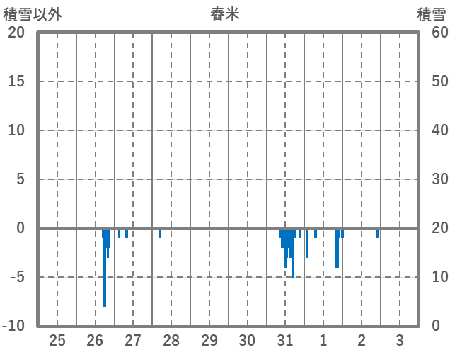 | 日 | 時 | 気温 | 降水 | 風向/風速 | 日照 | 積雪 | 降雪 |