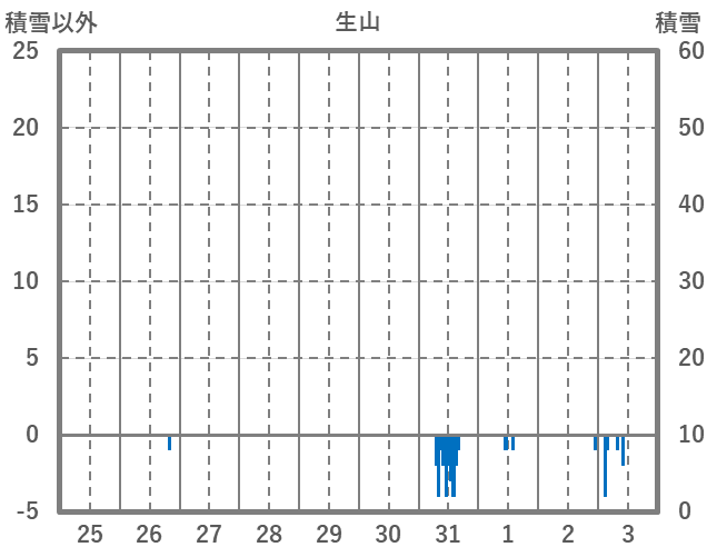 | 日 | 時 | 気温 | 降水 | 風向/風速 | 日照 | 積雪 | 降雪 |