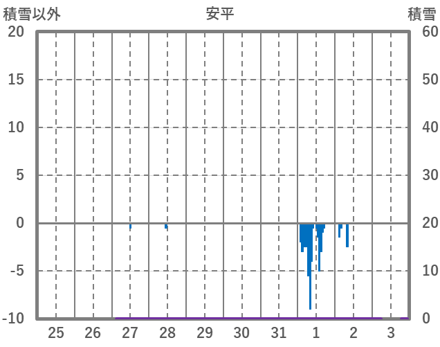 | 日 | 時 | 気温 | 降水 | 風向/風速 | 日照 | 積雪 | 降雪 |