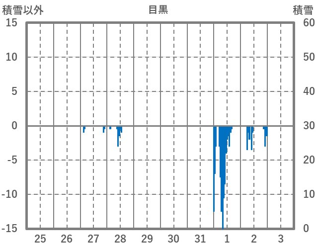 | 日 | 時 | 気温 | 降水 | 風向/風速 | 日照 | 積雪 | 降雪 |