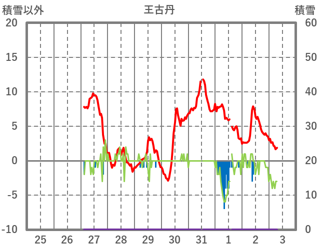 | 日 | 時 | 気温 | 降水 | 風向/風速 | 日照 | 積雪 | 降雪 |