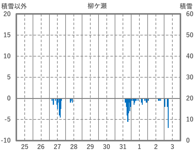 | 日 | 時 | 気温 | 降水 | 風向/風速 | 日照 | 積雪 | 降雪 |