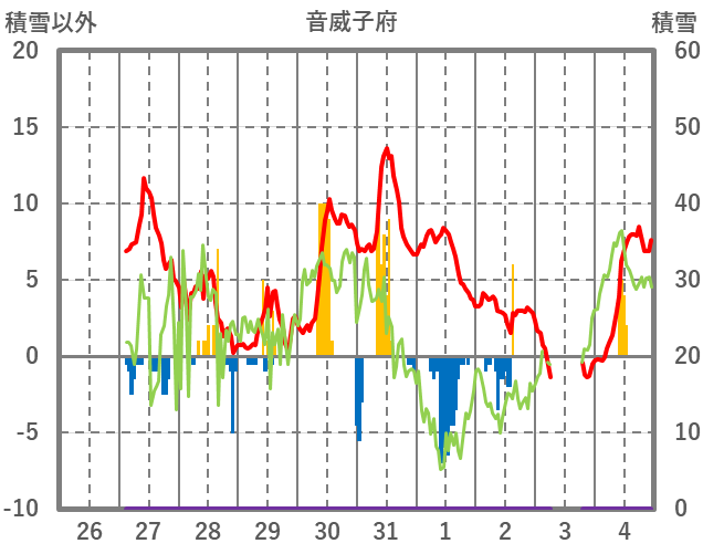 | 日 | 時 | 気温 | 降水 | 風向/風速 | 日照 | 積雪 | 降雪 |