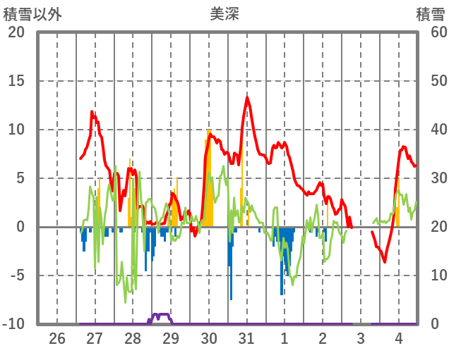 | 日 | 時 | 気温 | 降水 | 風向/風速 | 日照 | 積雪 | 降雪 |