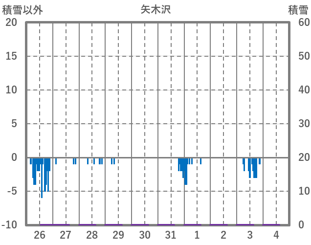 | 日 | 時 | 気温 | 降水 | 風向/風速 | 日照 | 積雪 | 降雪 |
