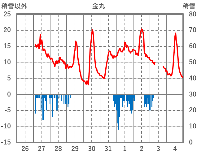 | 日 | 時 | 気温 | 降水 | 風向/風速 | 日照 | 積雪 | 降雪 |