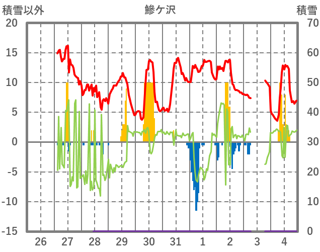 | 日 | 時 | 気温 | 降水 | 風向/風速 | 日照 | 積雪 | 降雪 |