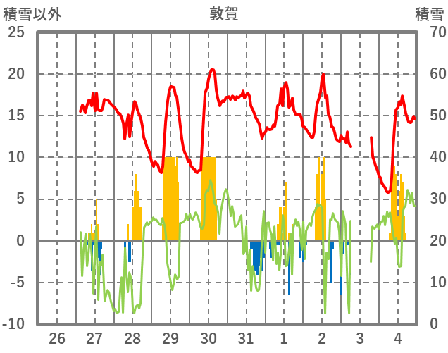 | 日 | 時 | 気温 | 降水 | 風向/風速 | 日照 | 積雪 | 降雪 |