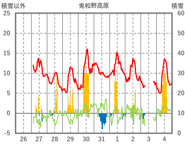| 日 | 時 | 気温 | 降水 | 風向/風速 | 日照 | 積雪 | 降雪 |