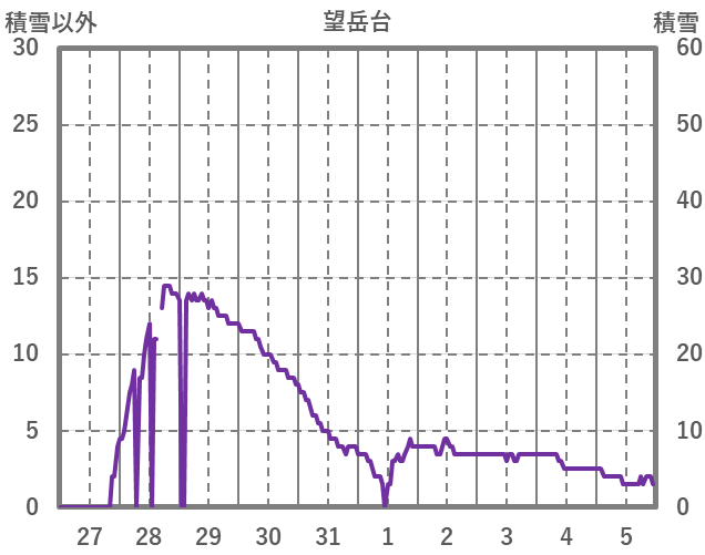 | 日 | 時 | 気温 | 降水 | 風向/風速 | 日照 | 積雪 | 降雪 |