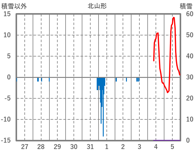 | 日 | 時 | 気温 | 降水 | 風向/風速 | 日照 | 積雪 | 降雪 |