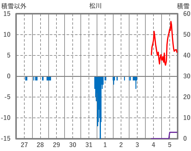 | 日 | 時 | 気温 | 降水 | 風向/風速 | 日照 | 積雪 | 降雪 |