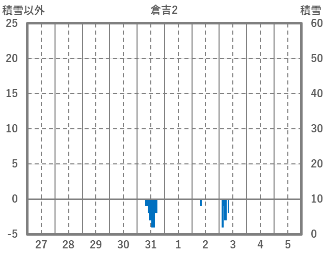 | 日 | 時 | 気温 | 降水 | 風向/風速 | 日照 | 積雪 | 降雪 |