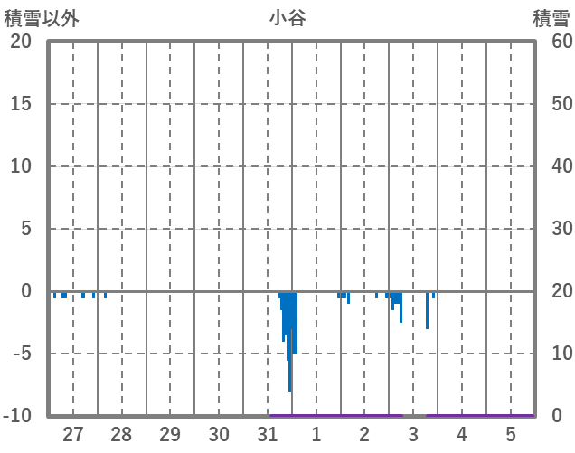| 日 | 時 | 気温 | 降水 | 風向/風速 | 日照 | 積雪 | 降雪 |