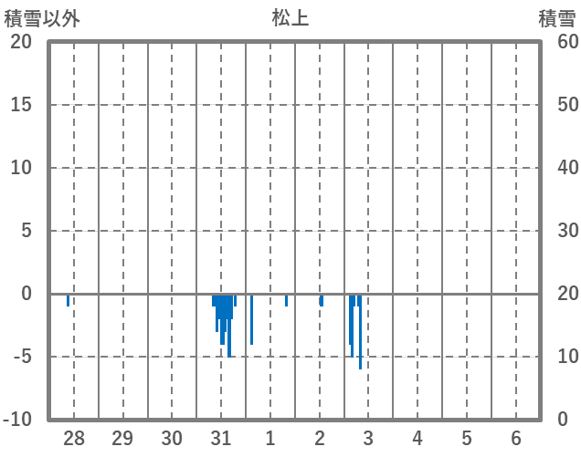 | 日 | 時 | 気温 | 降水 | 風向/風速 | 日照 | 積雪 | 降雪 |