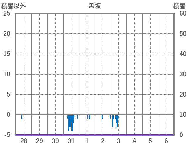 | 日 | 時 | 気温 | 降水 | 風向/風速 | 日照 | 積雪 | 降雪 |