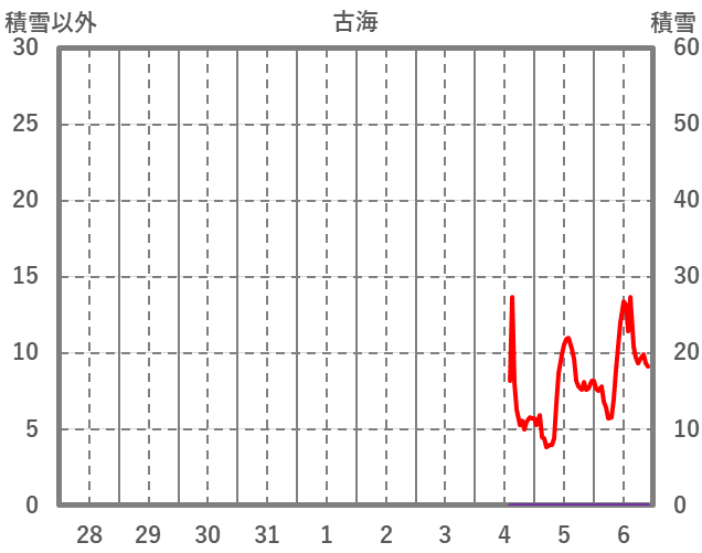 | 日 | 時 | 気温 | 降水 | 風向/風速 | 日照 | 積雪 | 降雪 |