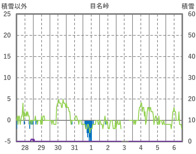 | 日 | 時 | 気温 | 降水 | 風向/風速 | 日照 | 積雪 | 降雪 |