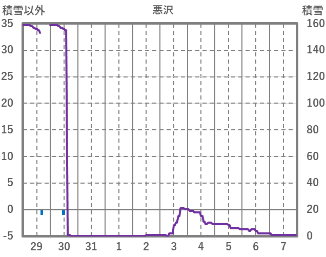 | 日 | 時 | 気温 | 降水 | 風向/風速 | 日照 | 積雪 | 降雪 |