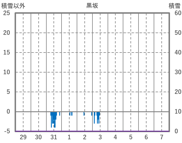 | 日 | 時 | 気温 | 降水 | 風向/風速 | 日照 | 積雪 | 降雪 |