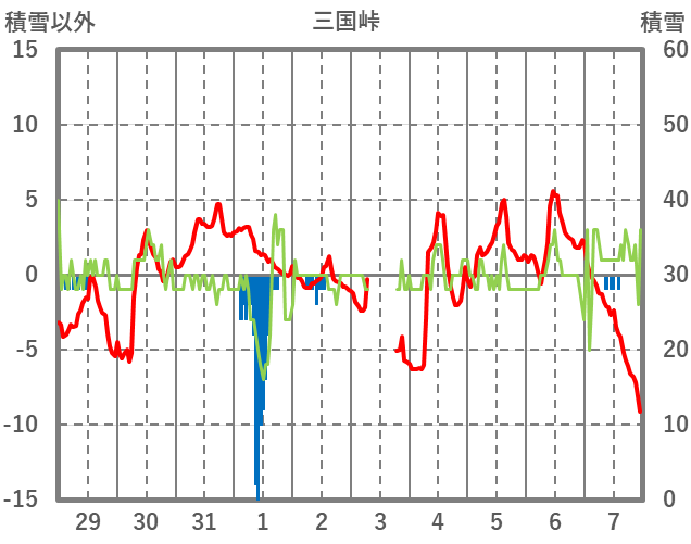 | 日 | 時 | 気温 | 降水 | 風向/風速 | 日照 | 積雪 | 降雪 |